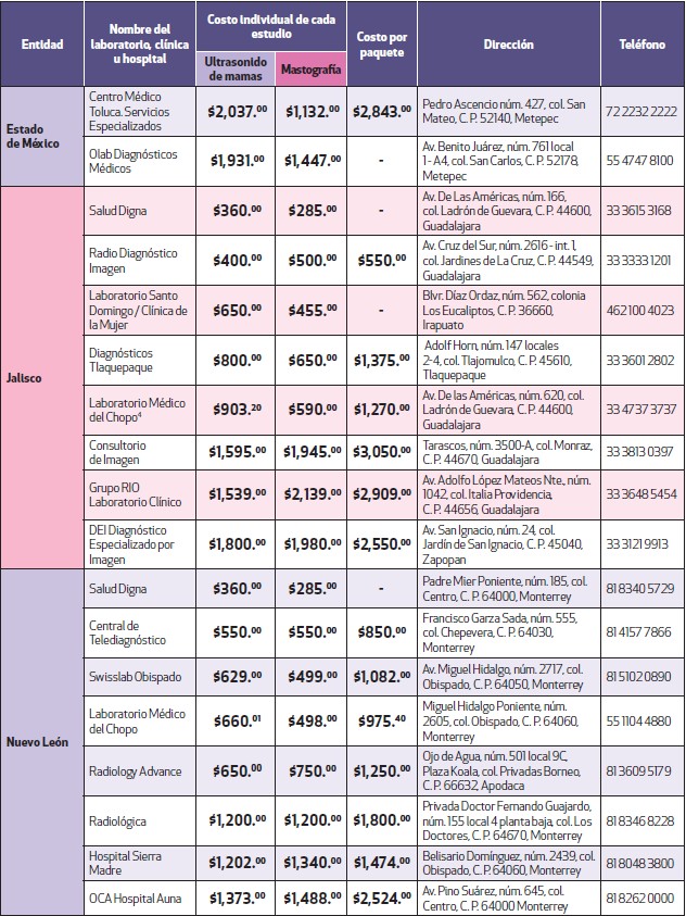 La Procuraduría Federal del Consumidor (PROFECO), a través de su Dirección General de Estudios sobre Consumo, realizó un levantamiento de precios de mastografías y ultrasonidos de mama en cinco estados del país entre el 15 y 20 de agosto de 2025.